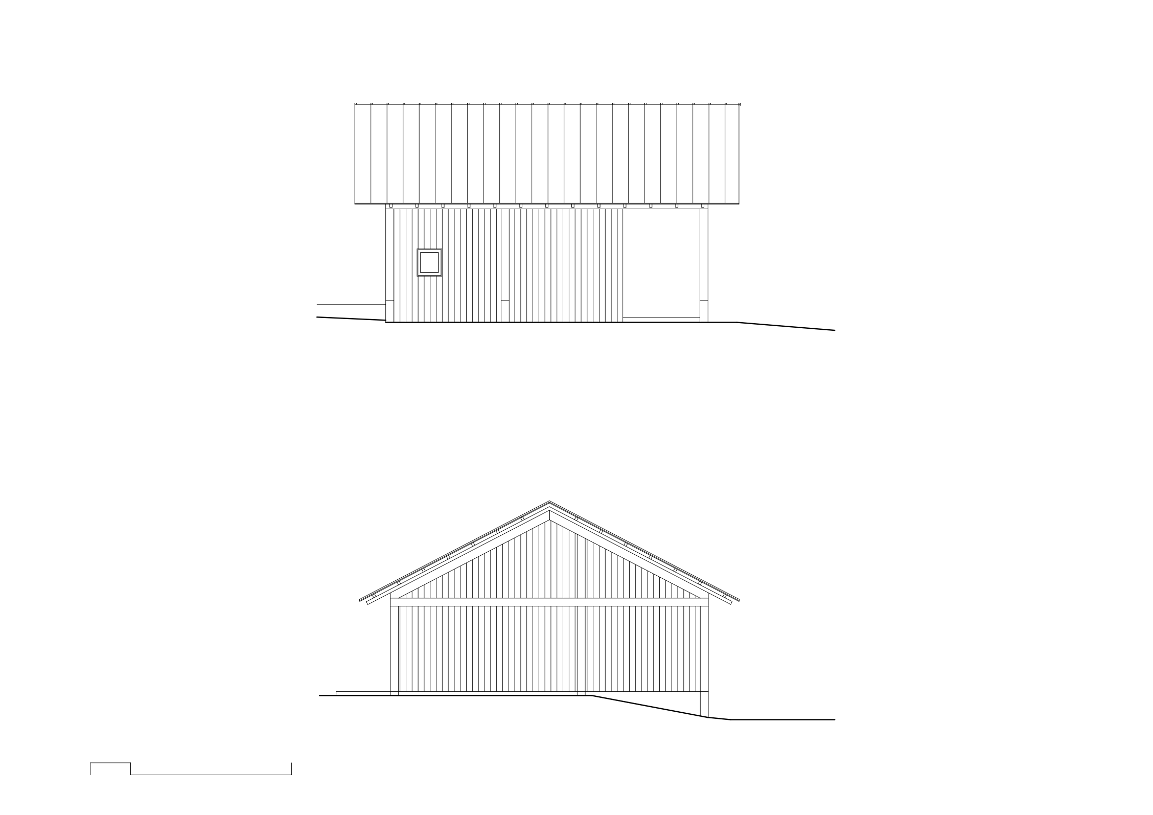 Une ancienne remise, qui devait faire l’objet d’une restructuration. Le programme est sommaire, un studio comprenant un coin cuisine, une zone nuit, une salle de bain ainsi qu’un petit garage fermé. Le projet devait s’inscrire exactement dans le volume originel. Nous avons alors entamé un long travail d’analyse et de réinterprétation qui nous guidera tout au long du processus de conception jusqu’à nous porter sur ses moindres détails et ce, malgré la modestie de son échelle. À l’intérieur, la perception change radicalement, la frugalité fait place à la générosité et la structure devient omniprésente. Faire d’un exercice banal une opportunité de questionner le rapport entre espace et structure dans une tentative de réduction à un tout.